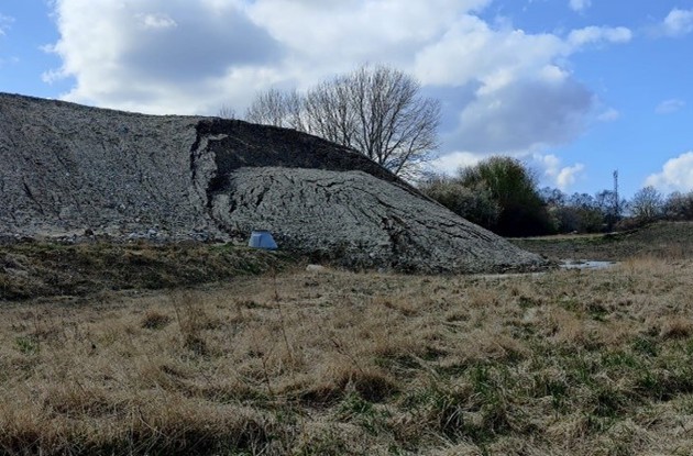 Den jord, som er placeret på sin permanente placering, er komprimeret og alle stejle skråninger er sikret med net for at undgå skred.