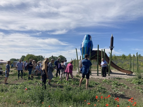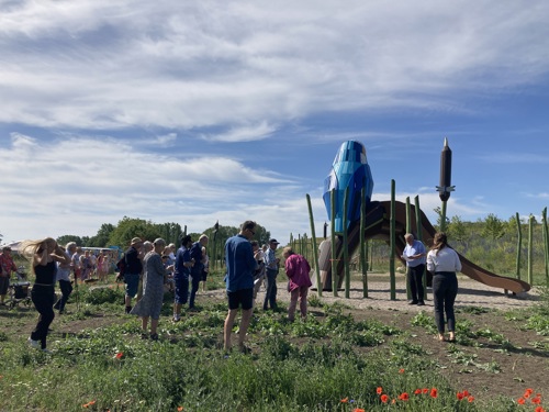 Lørdag den 24. juni blev den fantastiske legeplads med isfuglen i Hyldager Bakker officielt indviet. Det gjorde den med skattejagt for børnene, kaffe og is og tale af borgmester Steen Christiansen