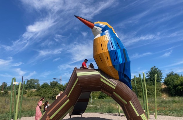 Legepladsen med isfuglen i Hyldager Bakker blev officielt indviet
