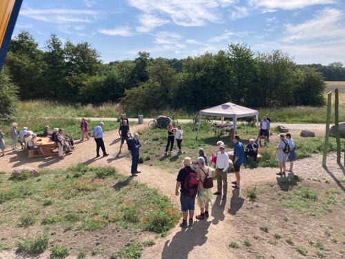 Selvom Hyldager Bakkers stier og mountainbike-spor blev indviet sidste sommer, var der god grund til at mødes i den sydlige del af Hyldager Bakker lørdag den 24. juni, for her blev legepladsen med isfuglen officielt indviet.